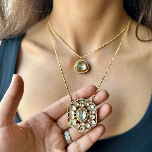 Roseate- Moissanite Polki Pendant Set